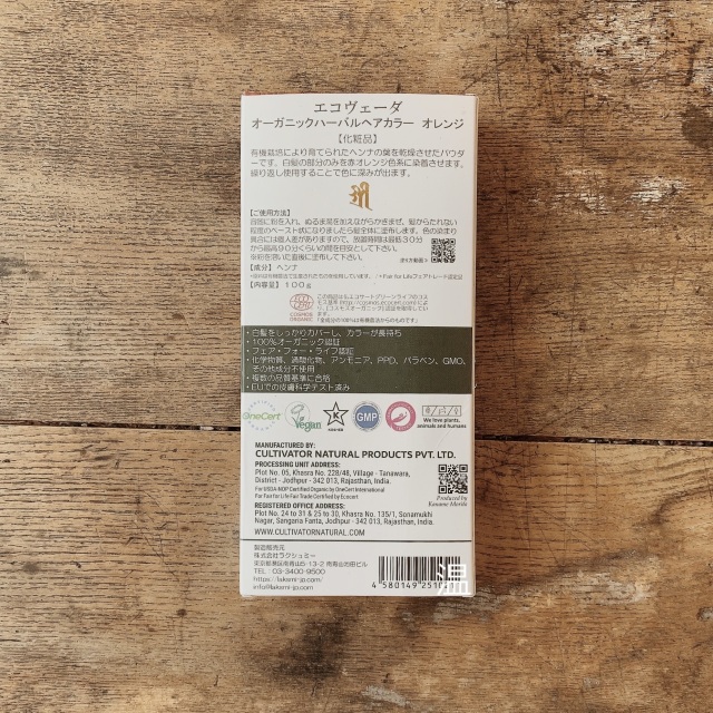 eco・veda(エコヴェーダ)のハーバルカラーシリーズ「オレンジ」です。