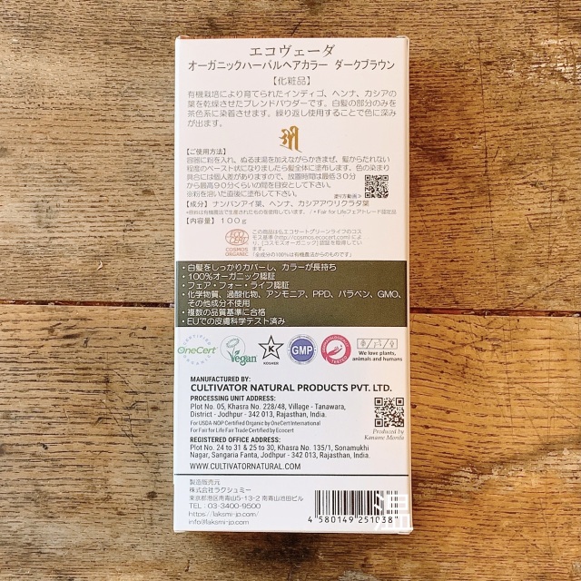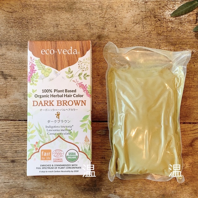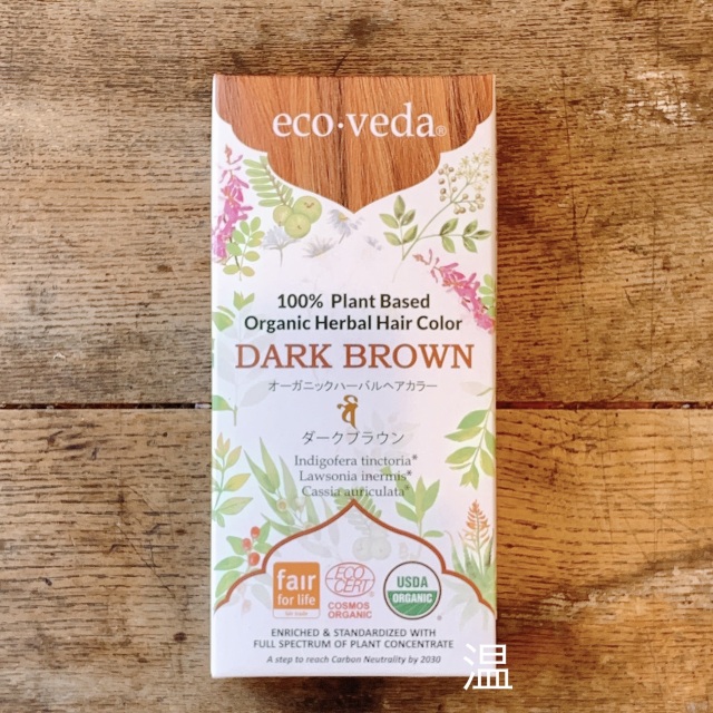 eco・veda(エコヴェーダ)のハーバルカラーシリーズ「ダークブラウン」です。