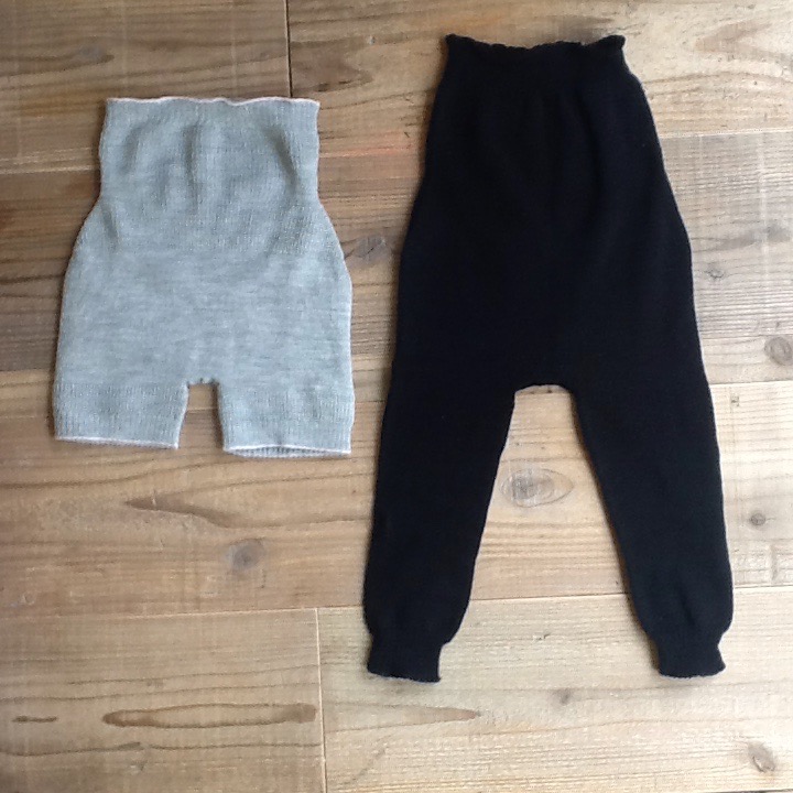 上の写真は、左が幼児用冷えとりスパッツ、右は